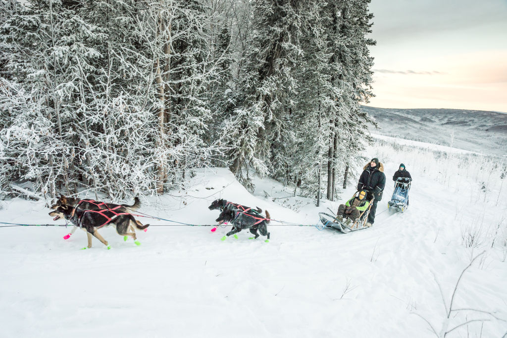 Each of our three hands-on adventures invites you to connect with a team of Alaskan Huskies – not just as a spectator, but as part of the team. In the winter, our Scenic Day Mushing Tour lets visitors harness and hook up the dogs, then drive their own sled and ride as a passenger through breathtaking snowy trails. In the snow-free months, our Sled Dog Safari Tour gives guests a rare look at how we train for long-distance races in the off-season, with a thrilling wheeled ride through the forest. For those who want to explore Alaska on foot, our Husky Hiking Tour offers a unique off-leash adventure, where you’ll hike alongside a pack of free-running sled dogs through Fairbanks’ beautiful backcountry.