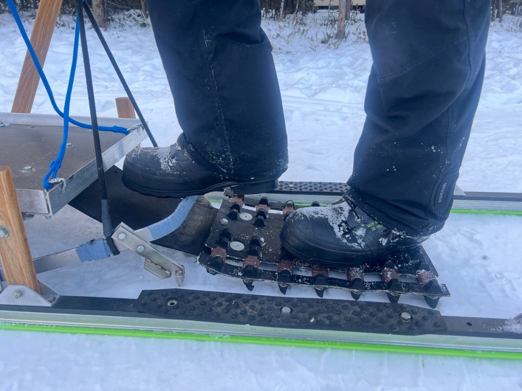 Finally, we come to the nature of the snowpack. Our brakes work best in dense, hardpacked snow. They are far less effective in loose, fluffy snow. Most dog sled tour providers want to have 12 – 16 inches of snowpack on the trail before we switch from dog mushing on wheels to dog mushing on sleds.
